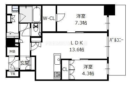 户型 2LDK(洋7.3 洋4.3 LDK13.6)