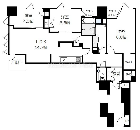 户型 3LDK(洋8.0 洋5.5 洋4.5 LDK14.7)