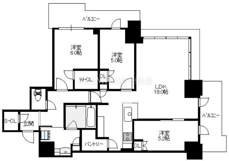 户型 3LDK(洋6.0 洋5.2 洋5.1 LDK19.3)