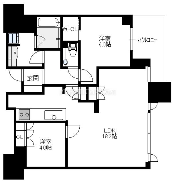 户型 2LDK(洋6.0 洋 LDK18.2)