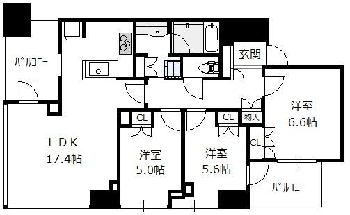 户型 3LDK(洋6.6 洋6.0 洋5.6 LDK16.8)