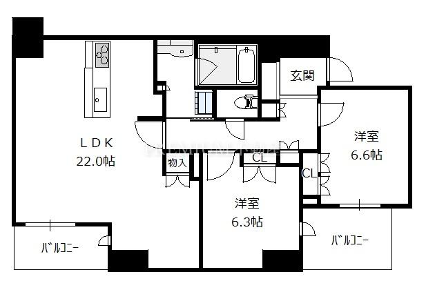户型 2LDK(洋6.6 洋6.3 LDK22.0)