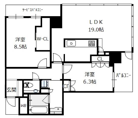 户型 2LDK(洋8.5 洋6.3 LDK19.0)