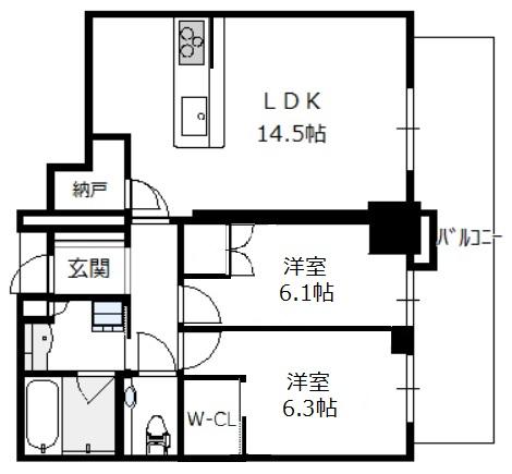 户型 2LDK(洋6.3 洋6.1 LDK14.5)