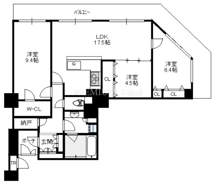 户型 3LDK(洋9.4 洋6.4 洋4.5 LDK17.5)