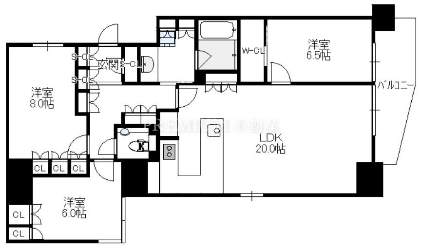 户型 3LDK(洋8.0 洋6.5 洋6.0 LDK20.0)