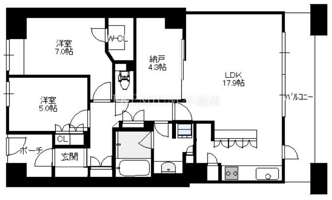 每平方米价格 63万日元/㎡~63万日元/㎡(平均62万日元/㎡)