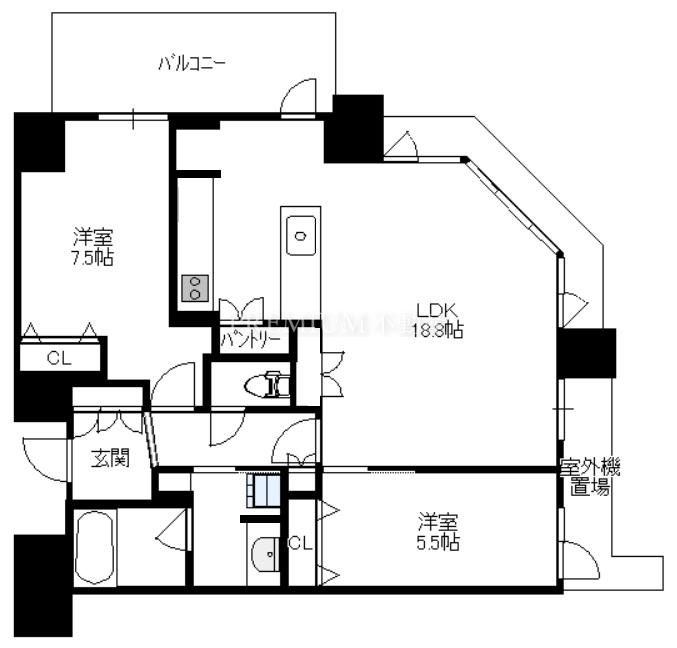 户型 2LDK(洋7.5 洋5.5 LDK18.8)