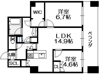 户型 2LDK(洋6.7 洋4.6 LDK14.9 )